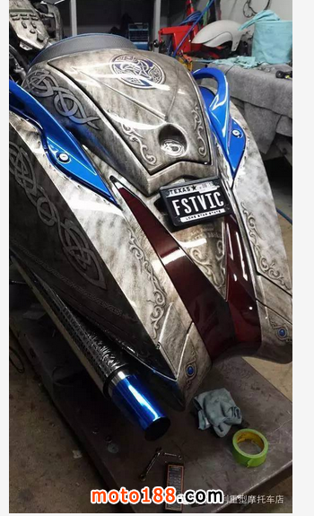 核心提示: 這臺威神的設(shè)計靈感來源于紋身圖案,縱橫交錯的刺藤花紋布滿車身,精細的涂裝紋身伴隨威神重獲新生。猜想駕駛這樣的機車應(yīng)該
