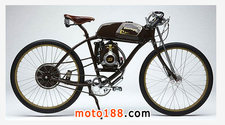 Derringer Cycles復古式摩托車外形與老式自行車很相似,只是設計師在自行車真皮手工車座和把手之間的橫梁上裝有油箱,下方配備一臺本田(Honda)49CC四沖程汽油發(fā)動機,另外,配有70毫米的鼓式剎車前輪還附帶了避震器,后輪同樣也設有倒輪閘式剎車。該車后輪左右兩邊各有一個飛輪,由兩組鏈條與腳踏板和發(fā)動機的牙盤相連,既可以像普通自行車一樣騎行,也能像摩托車一樣騎行。售價3,500美元,提供定制服務,擁有近250種靚麗色彩搭配選擇。