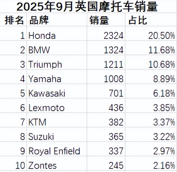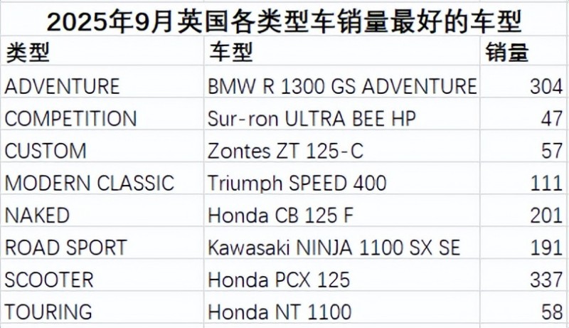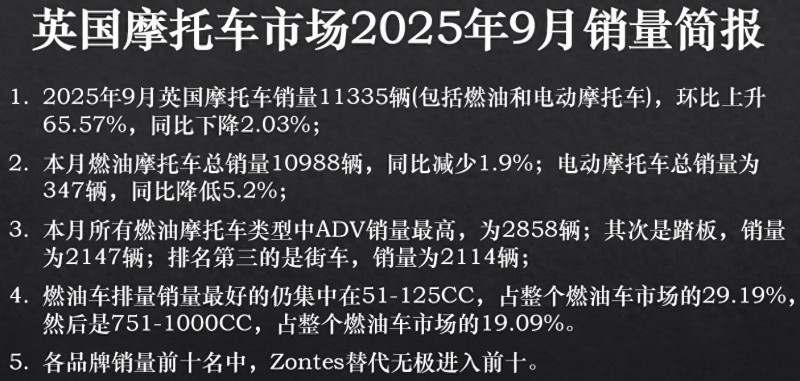 核心提示:2025年9月英國摩托車市場銷量簡報(bào)