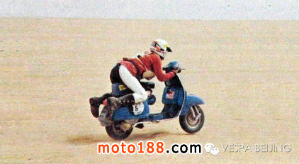 那你就大錯特錯了。在1980年的達喀爾賽場上,有這樣一群“瘋子”,騎著踏板摩托Vespa沖向了達喀爾的沙漠。