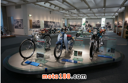 本田博物館共有三層高,第一層為主題展區(qū)域,不定時的更換展覽主題,這層還有資料室、商店、企劃室和咖啡廳。小商店可一定要逛逛哦!里面很多本田紀念品只有這里才能買到。第二層左邊是量產(chǎn)摩托車展示區(qū),右邊是量產(chǎn)汽車展示區(qū)。第三層則是展出四輪賽車和摩托賽車。第三層附近還有一個“Mobilityland”,在哪里有很多的娛樂表演,還有歷代的本田機器人和本田自行設(shè)計的小型噴氣式飛機。