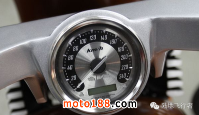車身機(jī)器外露的地方不多,全車以多殼包裹著。不過V-Rex的車身并不低調(diào),除用上夸張且硬朗的線條外,車上還有不少電鍍配件。引擎左右兩邊都有電鍍部件, 掣盒、皮帶蓋、排氣管等都是電鍍處理。除引擎外,車上還有不少部件都屬哈雷正廠出品,例如掣盒、儀表、把手等。V-Rex采用的是單邊尾搖臂,于車身右邊 可以清楚欣賞尾輪的線條美。充滿金屬感的儀表已套上km/h刻度,下方有一小巧的LCD。