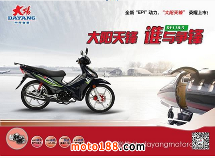 大陽(yáng)2015年彎梁新品"天鋒"(DY110-5)懸掛北易公司自行研發(fā)的“EPI110-M”型發(fā)動(dòng)機(jī),具備分層燃燒、精準(zhǔn)配氣、振動(dòng)平衡、耐久性匹配等四大核心技術(shù),動(dòng)力更強(qiáng)、油耗更低、壽命更長(zhǎng)!