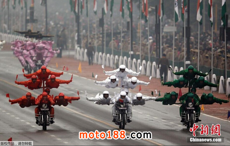 印度閱兵:一輛摩托車七個人 首現女兵方陣