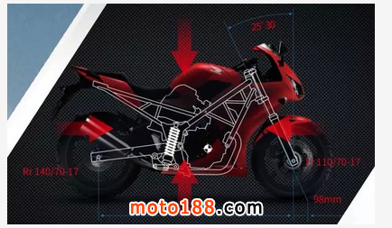 采用圓鋼管桁架結(jié)構(gòu)菱形車架,并且對(duì)構(gòu)成部件的形狀、壁厚等做了優(yōu)化,其強(qiáng)度和韌性能在高水平上實(shí)現(xiàn)操控輕快感與穩(wěn)定感的均衡;