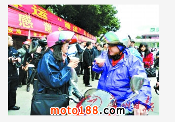 據(jù)肇慶市2015年春運“暖流行動”工作小組辦公室有關(guān)人士介紹,今年的“暖流行動”活動與往年相比,有不少新亮點。今年提供的服務更加完善,不僅提供 熱姜粥、面食、熱茶水、摩托車檢測服務,而且根據(jù)客流的實際需求,今年在各服務點增設(shè)了移動4G-WiFi上網(wǎng)和手機充電便民服務。而沿線安全指引牌、服 務點進出站指示牌布設(shè)也將更加清晰完備。另外,經(jīng)肇慶市政府同意,在2月4日至3月15日春運期間,肇慶市轄區(qū)內(nèi)的所有收費站對摩托車實行免費通行。