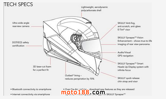 新浪科技訊 北京時間2月28日早間消息,創(chuàng)業(yè)公司Skully開發(fā)了內(nèi)建顯示屏的摩托車頭盔,并試圖將豪華轎車的功能提供給摩托車車主。該公司近期完成了1100萬美元的融資。