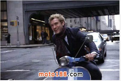 在2004年被翻拍的電影《Alfie》里,Jude Law所飾演的花花公子Alfie則重新刻畫(huà)出了一個(gè)現(xiàn)代版MOD的形象——實(shí)質(zhì)上,稱(chēng)之Dandy或許更為恰當(dāng)。但可惜,真正意義上的Dandy絕沒(méi)可 能趕上VESPA的年代——男主人公Alfie信奉“衣著是一種國(guó)際通用的語(yǔ)言”。因此他衣著考究,穿一套Tom Ford時(shí)期的Gucci西裝,粉紅色襯衫及Prada皮鞋;噴香水時(shí),甚至也不忘給“下臥鋪”的兄弟來(lái)上點(diǎn)兒,足見(jiàn)情趣。但這是個(gè)落魄的花花公子,以開(kāi) 豪華房車(chē)為生。在平時(shí),他的交通工具是一部藍(lán)白相間的VESPA,載著他,和他各個(gè)女朋友,徜徉在曼哈頓的大街小巷。