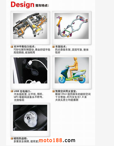 整車長(zhǎng)度只有1830mm的“U悅”塊頭雖不大卻異常醒目,整車層次分明、色彩搭配合理,洋溢著濃郁的輕靈氣息。在參與路試的老少男人眼里,那銳利的大燈、倔強(qiáng)的前面板、短小厚重的車身后部,讓這“U悅”的面孔里透著奔跑的欲望……西方諺語(yǔ)說(shuō):“一千個(gè)讀者就有一千個(gè)哈姆雷特”,面對(duì)“U悅”,我們想說(shuō)的是:有一千個(gè)觀眾就有一千個(gè)“U悅”。這顯然是一款在造型上經(jīng)過(guò)廣泛調(diào)研和深思熟慮的車型,整體融合了踏板車與彎梁車的精髓,設(shè)計(jì)者盡可能做到客觀差異性和主觀一致性的統(tǒng)一。