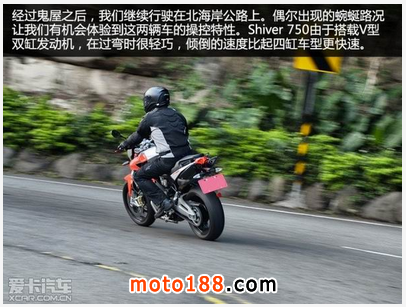 而另外一位主角—阿普利亞Shiver 750,儼然就是一輛典型的意大利運(yùn)動(dòng)型街跑,V型雙缸發(fā)動(dòng)機(jī)的設(shè)計(jì)很符合騎士們對(duì)于意大利車的“幻想”—略顯吵雜的發(fā)動(dòng)機(jī)聲浪、不算平順的運(yùn)轉(zhuǎn)質(zhì)感,但這是從本田工程師的角度來看待Shiver 750,沒辦法,誰叫本田的摩托車發(fā)動(dòng)機(jī)都有相當(dāng)高的運(yùn)轉(zhuǎn)精致度。