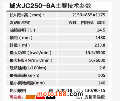 輪胎規(guī)格:前輪3.00-18,后輪130/90-15 ; 輪輞:輕合金整體輪。試驗(yàn)表明抓地力比較優(yōu)異。