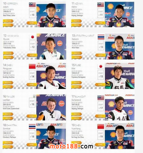 駕駛19號賽車的陳遠(yuǎn)航在測試中做出2:19.327的最快圈速,相對去年稍有進(jìn)步。第一次駕駛Moto3的14號陳鵬遠(yuǎn)從第一天的單圈2:30秒開始逐漸提升,到第三天做出2:22.411的最快圈速,在接下來的比賽里進(jìn)一步熟悉適應(yīng)這個(gè)比賽和賽車后,相信還能取得更大的進(jìn)步。