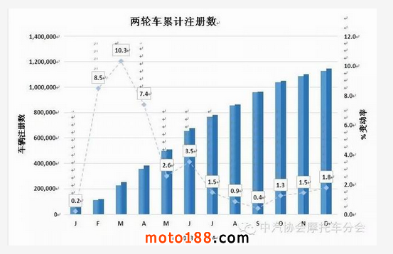 在2014年過去的12個(gè)月里,歐洲共注冊了1,145,940輛兩輪車,比2013年1,125750輛增長了1.8%。