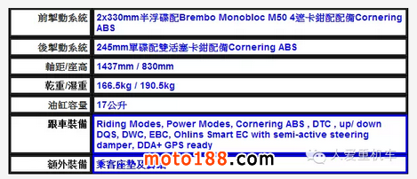 而最重大改變我認(rèn)為是電子方面,以前有的如DTC防打滑(Ducati Traction control)和EBC引擎牽引(Engine Brake Control)固然在,新的東西就有了DQS Up/down電子轉(zhuǎn)波 (Ducati Quick Shift),DWC防起頭(Ducati Wheelie Control),和Cornering ABS彎道防鎖死。