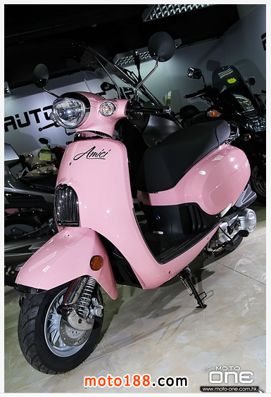 粉紅色迷人車(chē)身的 SACHS SKY 150,明顯針對(duì)女騎士而設(shè)計(jì),加上復(fù)古的意式綿羊的典雅外型,觀感份外可愛(ài)迷人。