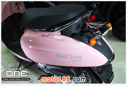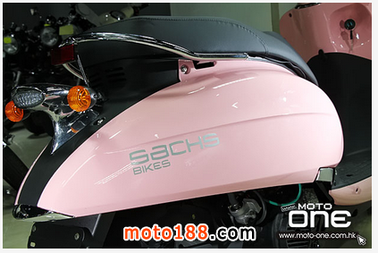 核心提示: 粉紅色迷人車(chē)身的 SACHS SKY 150,明顯針對(duì)女騎士而設(shè)計(jì),加上復(fù)古的意式綿羊的典雅外型,觀感份外可愛(ài)迷人。 SACHS是德國(guó)