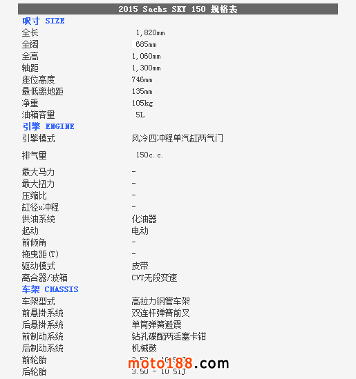 SACHS SKY 150最大賣(mài)點(diǎn)是其外型是仿傚意式綿羊仔設(shè)計(jì)出來(lái),兩伙小圓指揮燈伴著心型大燈,非常別致,頭沙板上的電鍍欄柵配以淡桃色的車(chē)身 及桃木色座墊,散發(fā)出陣陣少女味。車(chē)上的平地臺(tái)讓駕駛時(shí)更舒適外,還可以擺放較大型雜物,車(chē)輛使用單缸4沖程2汽門(mén)引擎,配以鋼管車(chē)架,是典型綿羊仔的結(jié)構(gòu)。