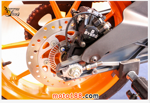 RC 390同樣配備Bosch ABS系統(tǒng)位于油箱下方。