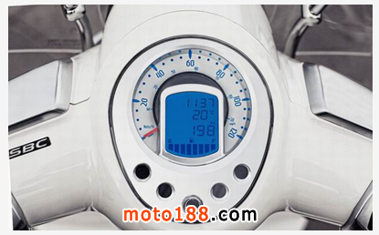 五十年代造型風(fēng)格的復(fù)古儀表盤鑲嵌極富現(xiàn)代科技感的數(shù)字液晶顯示屏,誘惑十足。油量、里程、時間、溫度、單次里程、電池電量、保養(yǎng)周期提醒等即時有效的信息智能反饋。