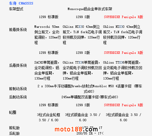 究竟1199有多少版本呢?可謂多不勝數(shù),包括標(biāo)準(zhǔn)版、S版、R版、S Tricolore、SENNA冼拿版及SUPERLEGGERA等等,至於剛發(fā)佈的1299 Panigale及S版,其實(shí)是取代1199系列。老實(shí)說,對(duì)不熟識(shí)WSBK世界超電賽的讀者來說,可能為廠方推出只增加不足100cc的1299感到奇 怪!(1199排氣:1,198cc / 1299排氣:1,285cc)