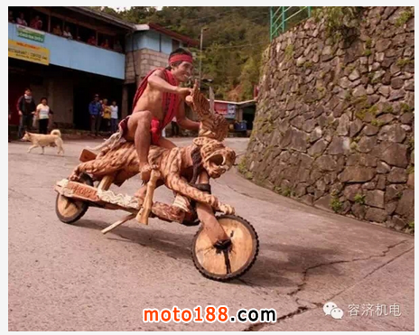在菲律賓的巴納韋市,一直以來木制小摩托就是伊富高人(菲律賓語意為“高山上的人”)最偏愛的交通工具,到今天人們依然在使用。幾個世紀以前,伊富高人發(fā)明了這種木制小摩托,方便人們更快地下山。族人們幾乎每天都要繞著山丘走,收集干柴,照料莊稼。因山路崎嶇,坡陡彎急,下山時肩負重擔是一件非常痛苦讓人筋疲力盡的任務。人們開始發(fā)明了輕便的全木制作的小摩托,每當他們有什么東西需要從山上運回村里,就把小摩托推上山。在山頂,他們簡單地把東西綁在摩托的兩側(cè),讓重力帶著他們下山,幾分鐘就到村。漸漸地,打造木制小摩托成為了一種藝術形式,工匠能手開始做出各種設計裝飾,比如當?shù)氐膭游铩ⅧB類以及人頭。今天,伊富高人依然贊美這項實用的發(fā)明,他們騎著木摩托沿名梯田邊的陡峭險路進行賽車,賽程7公里,表示慶祝豐收。