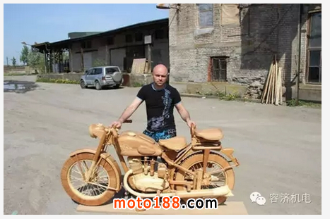 一位來自俄羅斯的木匠,他打造的這輛摩托車為當時蘇聯(lián)產(chǎn)的IL-49,完全采用全尺寸比例制作。這是一輛相當古老的摩托車,但也是相當?shù)慕?jīng)典。Yuri 的靈感來自網(wǎng)絡,當時在網(wǎng)上看到他人制作全比例的木制摩托車,受此啟發(fā),他決定打造自己非常喜歡的摩托車IL-49。有想法就開始動工,Yuri使用兩種木材,為櫸木和松木,由于材質(zhì)的特性不同,主要為了互補。四個月后這輛摩托車打造完成。