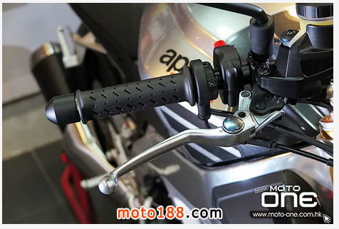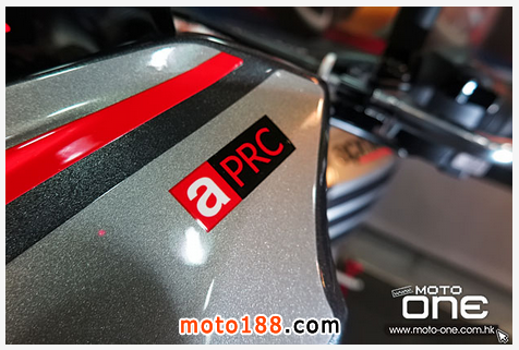 ●車頭上的APRC 貼紙,即是電子系統(tǒng)(Aprilia Performance Ride Control system),而該套電子系統(tǒng)包括Aprilia Wheelie Contro防起頭系統(tǒng)、Launch Control賽車式起步控制、Quick Shift快速電子轉(zhuǎn)檔及Traction Control循跡系統(tǒng)。