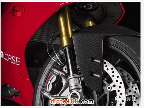 引擎連桿及閥門都采用重量更輕的鈦合金制造,配上鍛造輕鈴和機械式避震,進一步減省重量。Panigale R 比起 1299 輕了6.5kg,干重只有173kg,非常輕巧。