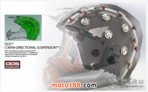 下面介紹的這款新型頭盔內(nèi)外夾層中設(shè)計(jì)了吸盤式碟狀減震裝置,能夠在6個(gè)不同位置轉(zhuǎn)動,從而分散撞擊力的強(qiáng)度;還有碟片中還塞滿了凝膠材料,可以有效地消除低強(qiáng)度的撞擊,這對摩托車賽車手來說是非常好的設(shè)計(jì)。