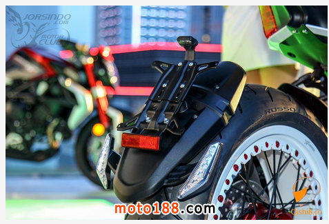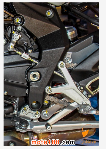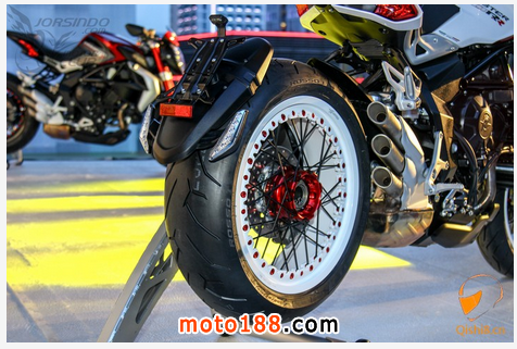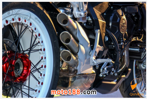 排氣管採用MV AGUSTA三缸車種特有的設(shè)計(jì)與F3 800相同,採用右邊三出式尾段