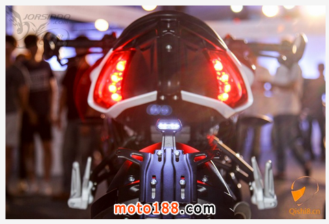 采用MV AGUSTA研發(fā)出兼具小體積與輕量化的三缸動(dòng)力系統(tǒng),總排氣量為798cc