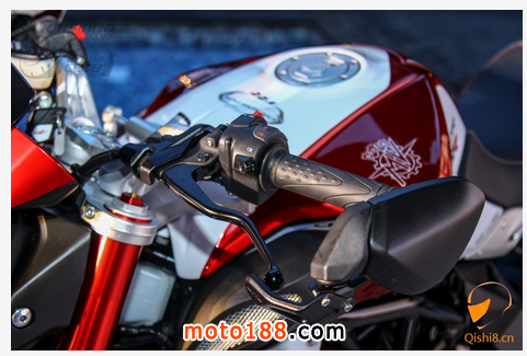 金屬油箱蓋上有著MV AGUSTA的LOGO,看起來質(zhì)感滿點(diǎn)
