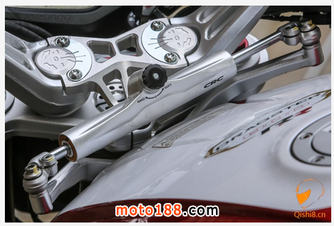 為了提升穩(wěn)定度,DRAGSTER 800RR則在龍頭上加裝了CMR防甩頭
