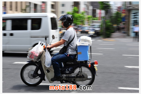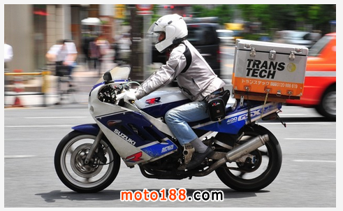 東京的拉面店就像是美國的塔可鐘快餐到處都是,有過之而無不及,這真的是填飽肚子的最佳選擇,尤其是天冷的時候一碗熱乎的拉面瞬間讓顧客感到生活的美好。繁忙的工作也讓很多顧客選擇叫一份拉面外賣,拉面這種食物比西餐漢堡更加講究進食時間,時間稍久面的味道口感就完全不同了,那么如何才能將外面在最短的時間內(nèi)送到客戶手中?這家店給了一個答案——川崎ZX-14R,還有什么能比這個快?灼藍的排氣相當(dāng)酷。
