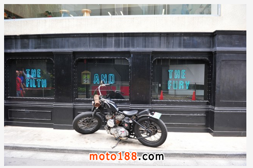 當(dāng)我看了太多的本田黨之后開始感覺到有些視覺疲勞了,在原宿街頭漫步的時候,路邊的哈雷Panhead吸引了我的注意。從車子的整潔程度可以看得出車主對其愛護有加,發(fā)動機殼體上些許的綠色銅銹也是恰到好處,背景玻璃上的文字“The Filth and The Fury(污穢與憤怒)”與這臺摩托更是相得益彰。