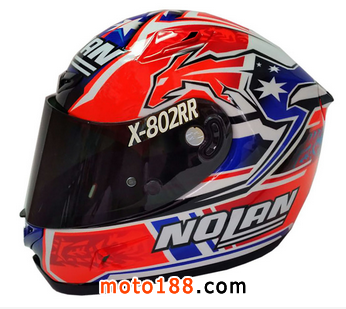 意大利品牌 Nolan 早前邀請了前 MotoGP 世界冠軍、澳大利亞車手斯通那,一道發(fā)布了新的 X-802RR Carbon 頭盔?,F(xiàn)場并展示了將于下個(gè)月在日本舉行的鈴鹿八小時(shí)耐力賽中,斯通那屆時(shí)將配戴其圖案的 “ 斯通那2015 ” X-802RR Carbon 頭盔登場。