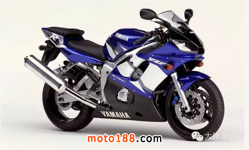 1999年,YAMAHA 在600CC領(lǐng)域推出了全新設(shè)計的、第一代YZF-R6。排量600CC最大馬力120匹,干重169公斤,直列四缸、每缸四氣門、DOHC結(jié)構(gòu)、側(cè)邊排氣、前后碟剎、化油器、正置減震、鏈條傳動、壓縮比12.4:1,為運動而生的仿賽車型YZF-R6獲得大量贊譽。(下圖)
