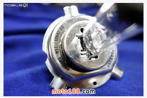 不過(guò)既然拿到 H17 燈泡,就順手與現(xiàn)任三陽(yáng)常用大燈 HS1 進(jìn)行比較,左方為 HS1,右方為 H17,可以發(fā)現(xiàn)在大燈燈絲位置稍微有一點(diǎn)點(diǎn)不同,另外就是 H17 燈組的安裝防呆凸耳寬度比起 HS1 都有所增寬,燈泡左右邊的鐵片也有新的防呆凹槽,能讓 H17 安裝時(shí)更輕松能找到定位。