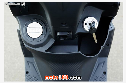 中央置物箱與鎖頭部分,左方的油箱蓋采用新的 SANYANG 商標(biāo),舍棄以往 SYM 的商標(biāo),中央置物空間有特別針對(duì)大體積保特瓶進(jìn)行設(shè)計(jì)。