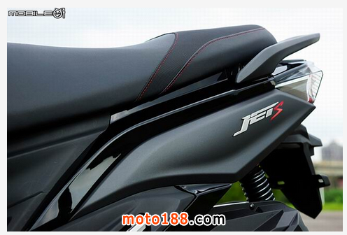 JET S 的座墊部分,采用大面積的座墊,雙材質(zhì)縫紉與紅線(xiàn)滾邊,除了讓前座能夠坐的舒適外,后座也有特別減低六度傾斜角,中長(zhǎng)途騎乘時(shí)也能明顯感到差異。
