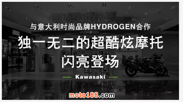 核心提示: 運動型摩托的旗艦至尊Ninjia ZX-14R,與意大利奢侈品牌HYDROGEN合作,在上海新世界大丸百貨門店閃亮登場??犰诺能嚿?,行云流