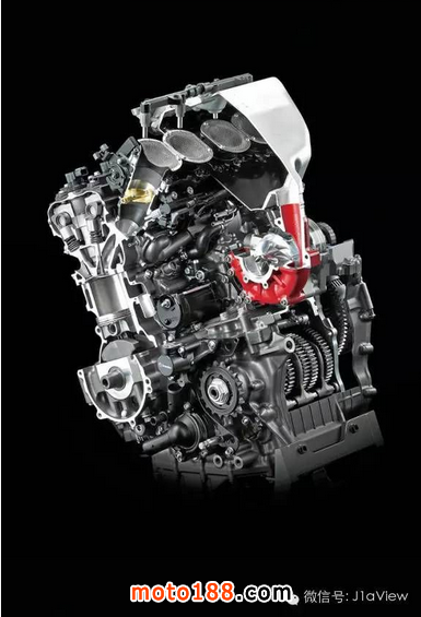 在鏡面黑的外殼下藏著的發(fā)動機虎虎生威。在H2系列上,川崎希望把他們在空氣動力學(xué)上關(guān)于渦輪機,增壓機,材料學(xué)和制造工藝上最頂尖的技術(shù)都集合到這一部車上。H2的最高功率為200PS,由它引伸出來的賽道版H2R的最高功率更是達(dá)到了310PS。