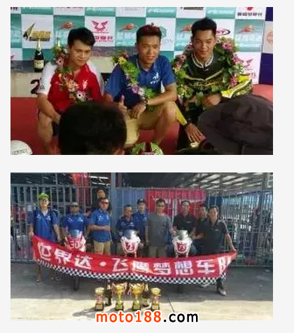 核心提示: 7月12日,2015年全國公路摩托車錦標賽(CRRC)廣東三水站,世界達飛鷹夢想車隊再次奪取團體和個人雙冠軍,為上一站的第二名出