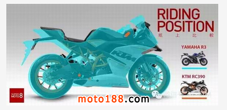 在經(jīng)過紙上比校后發(fā)現(xiàn),RC390的設(shè)定比起R3手把更低 座高更高 腳踏更后移。嗯...由此可見RC390的騎姿設(shè)定的確更具侵略性(個性導(dǎo)向),而R3更適合都會代步騎乘(實用導(dǎo)向)!10萬的價差下 到底...到底...你們會怎么選擇?