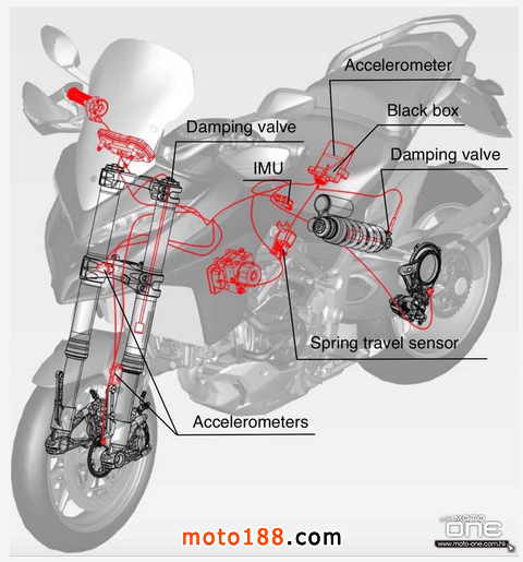 ●由兩個(gè)加速計(jì)Accelerometers感應(yīng)器及IMU收集車身俯沖、傾角數(shù)據(jù),讓避震在行駛時(shí)不斷作自我調(diào)校最佳的吸震效果。