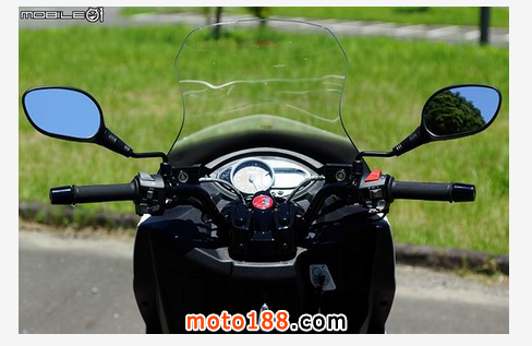 車手視角部分,風(fēng)鏡占據(jù)大多數(shù)的視野,但透命的風(fēng)鏡加上材質(zhì)較為優(yōu)良,這張可以很明顯看出在風(fēng)鏡邊緣切線部分并沒有像有些車款容易有變型,另外對于 Elite 車系吸引人的一點,就是裸露的把手,許多購買大羊車款卻不喜歡原廠把手蓋的車主,通常都會另尋改裝方式,而 Elite 300E 原廠配備的把手蓋組更方便進行類似改裝。