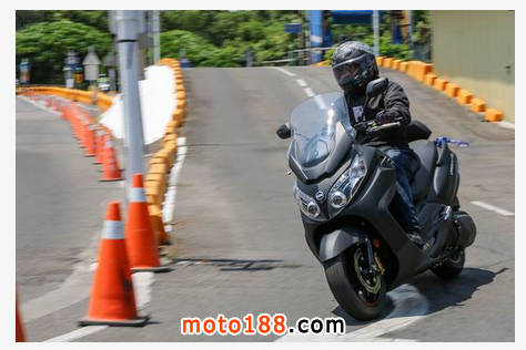 起步接合的部分大開油門時,接合的抖動感幾乎不存在,像是125速克達(dá)一般順暢,而刻意慢速行駛時,油門輕輕開開關(guān)關(guān)維持車輛平衡時,會感受到接合感帶來的落差。這次試乘的場地不大,加上駕訓(xùn)班內(nèi)仍有正在為駕照努力的民眾,所以騎乘上較保守,加速性感受有限,轉(zhuǎn)速爬升十分順暢,加速性較400i有略為提升。