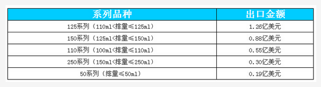 摩托車五大系列出口金額排名情況如下: