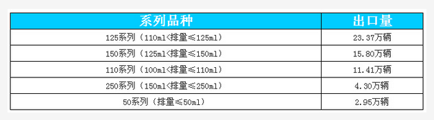 摩托車五大系列出口量排名情況如下: