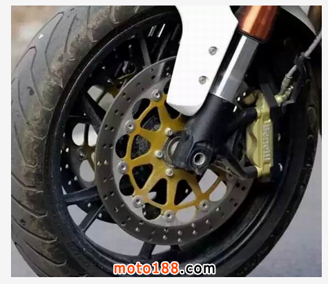 制動(dòng)系統(tǒng):(前)雙碟/每碟對(duì)向四活塞放射卡鉗